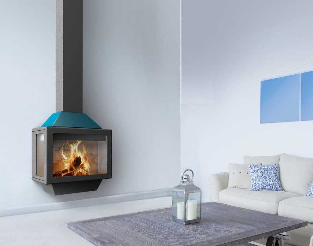 Камины подвесного типа выглядят наиболее необычно, поскольку и очаг, и дымоход монтируются к потолку. За счет этого они обладают длинными дымоходами небольшого диаметра.