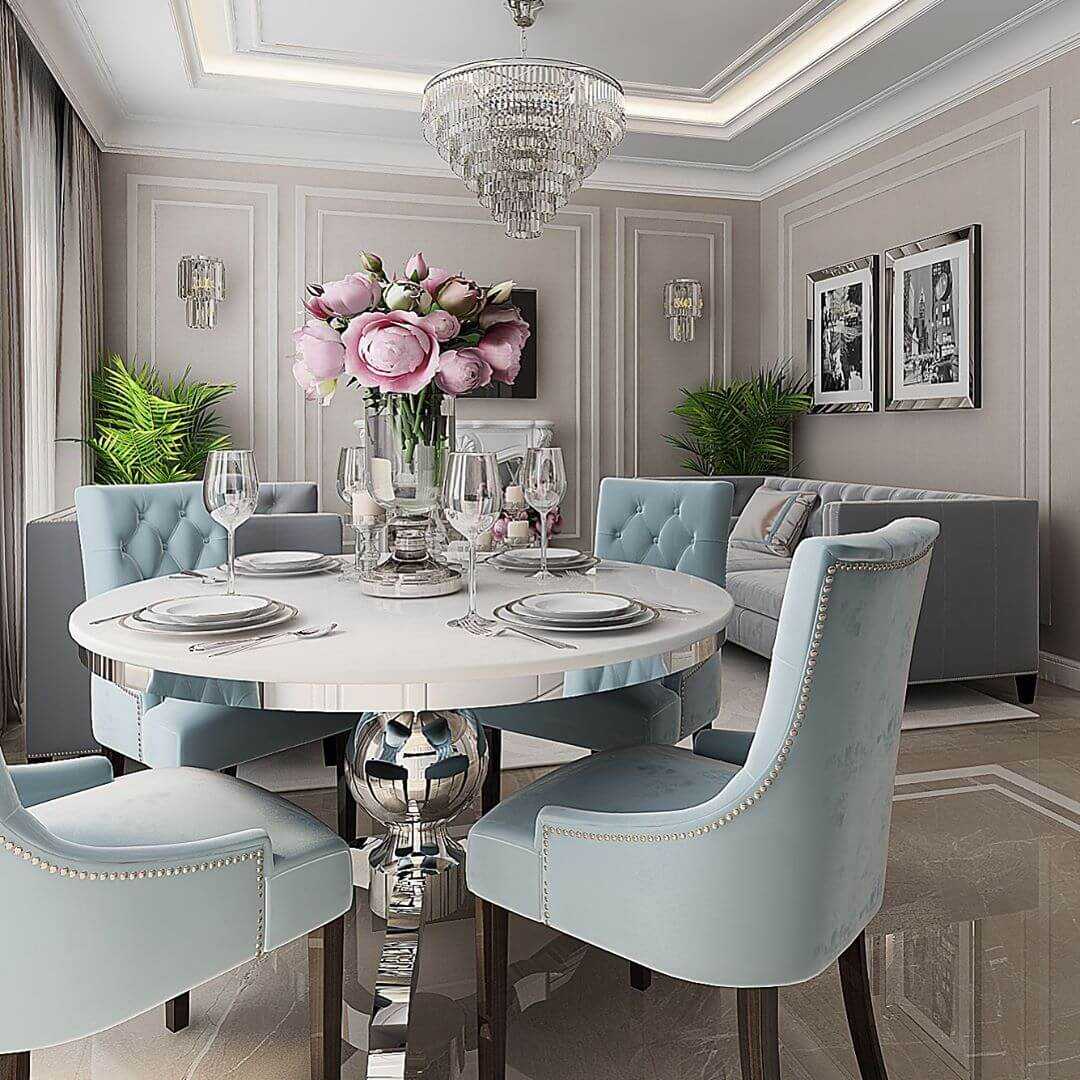 - В классической гостиной должна быть столовая с мягкими креслами из кожи или качественного текстиля.
