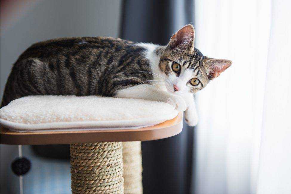 Ковролин — это достаточно прочный и мягкий материал. На нем кошке будет удобно сидеть и также комфортно точить об него когти.