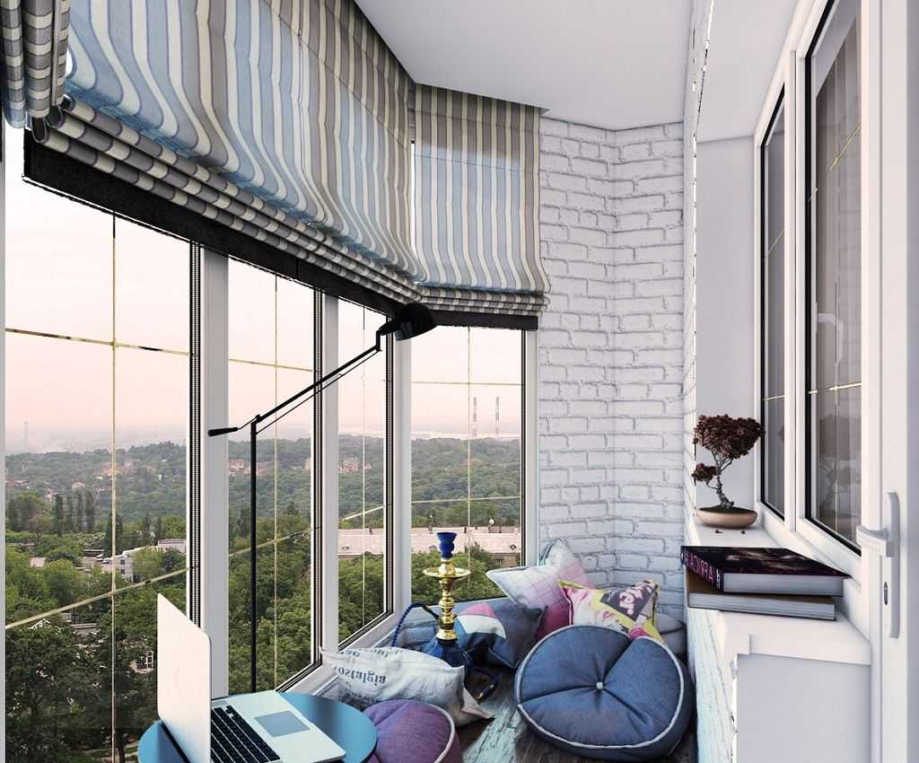 Здесь можно оборудовать зимний сад, кабинет, библиотеку. Желательно утеплить стены и пол, сделать современную отделку, поставить диван и превратить нежилые квадратные метры в зону отдыха. Панорамное остекление нужно для того, чтобы визуально увеличить пространство. Для стандартных балконов выбирают классические или угловые окна. Чтобы здесь было комфортно находиться в холодное время года, надо вынести батарею. Ставить ее нужно около стены.