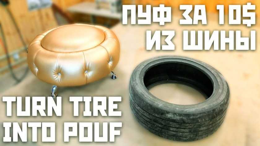 - Автопокрышек. Пуф порадует владельцев высокими техническими характеристиками. Сооружается он из старых покрышек. Применяется в качестве домашней или садовой мебели. Уличные изделия окрашиваются краской, а сверху оснащаются фанерой, обитой тканью. Домашняя мебель полностью декорируется бечевкой или текстилем.