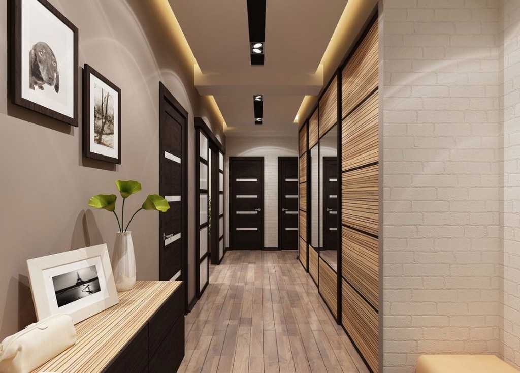 Современный интерьер длинной прихожей