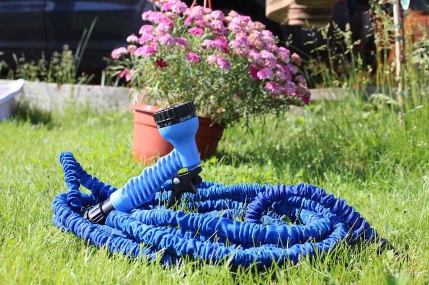 Растягивающийся шланг используется для полива при постоянном напоре воды