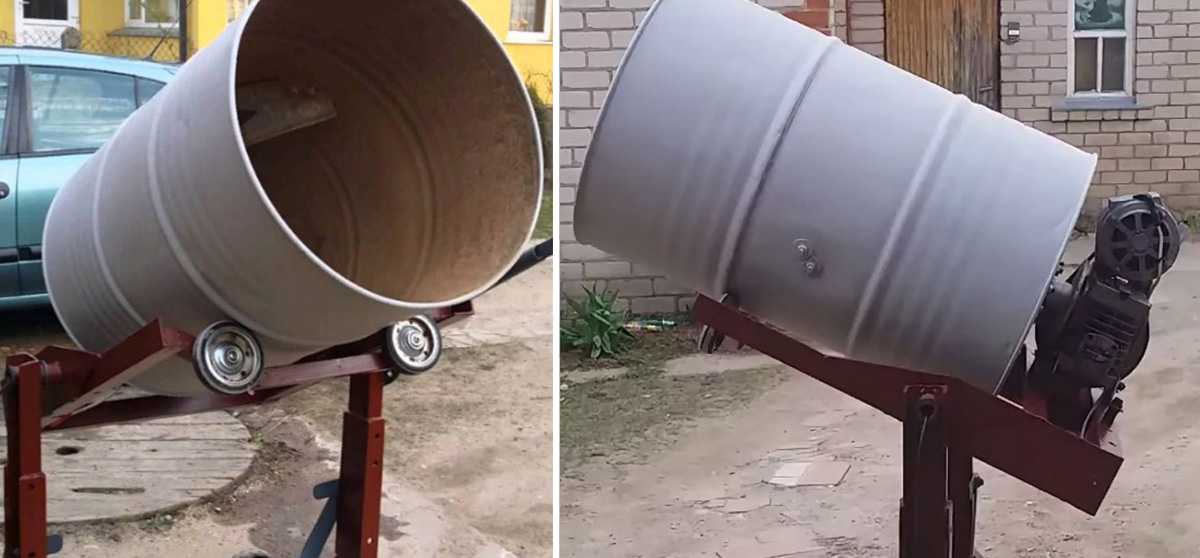 Перед тем как приступить к изготовлению агрегата своими руками, следует подобрать емкость необходимого размера. Идеальным вариантом будет использование для этого железных бочек, которые способны вместить не менее 200 л. Этот объем считается хорошим для замешивания нужного количества бетона за 1 раз.