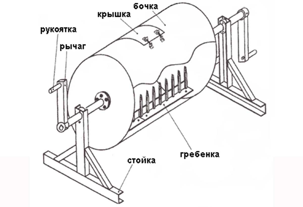 Все эти конструктивные элементы можно изготовить своими руками либо снять с разной техники или оборудования. Так, в качестве барабана используют готовые (без дырок) молочные бидоны, металлические бочки с толщиной стенок более 1 мм и даже пластиковые большие кастрюли и самодельные емкости.