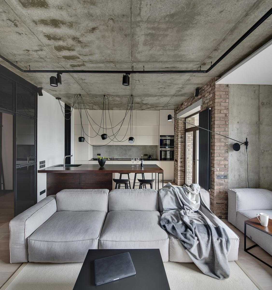Ниже мы рассмотрим два примера современного интерьера с элементами стиля лофт в жилом помещении из портфолио студии: