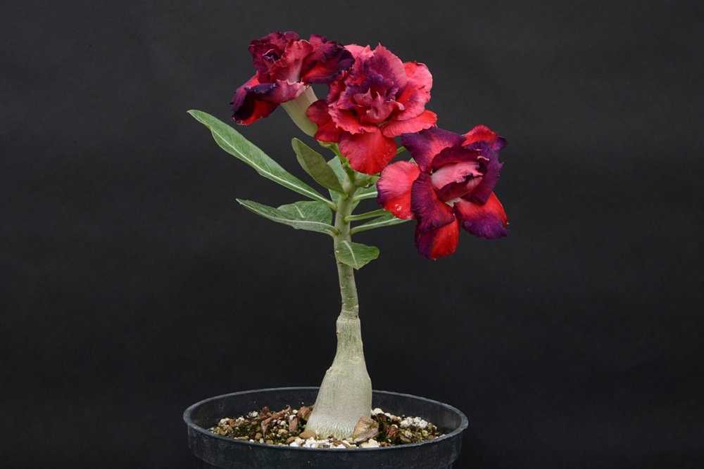 Адениум. Оригинальный и, можно сказать, экзотический цветок: утолщенные стебли, яркие крупные цветы скрывают ядовитый сок.