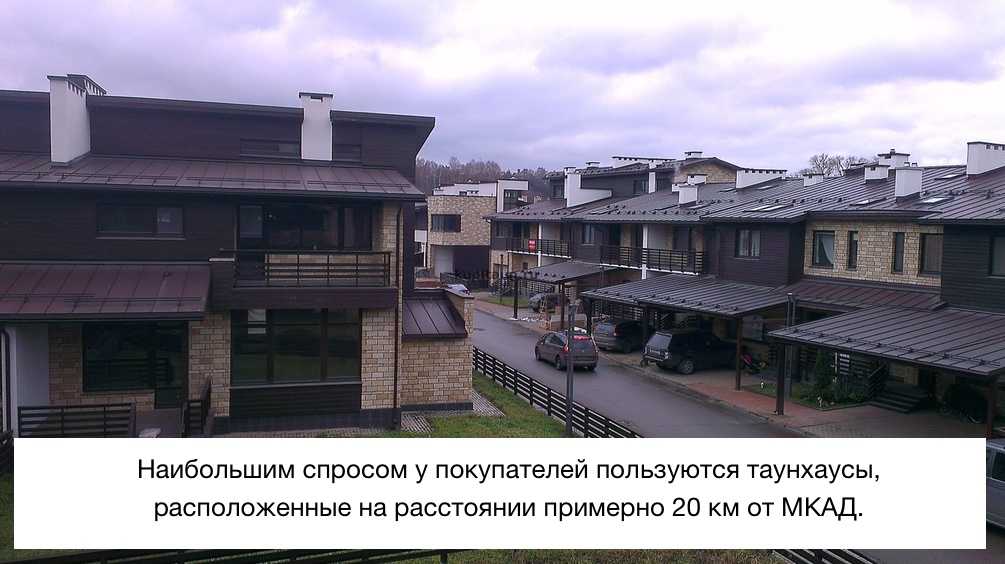 Сегодня таунхаусы являются лидерами на рынке загородного жилья Подмосковья. Наибольший спрос на такие дома сосредоточен в ближнем Подмосковье, рядом со МКАД.