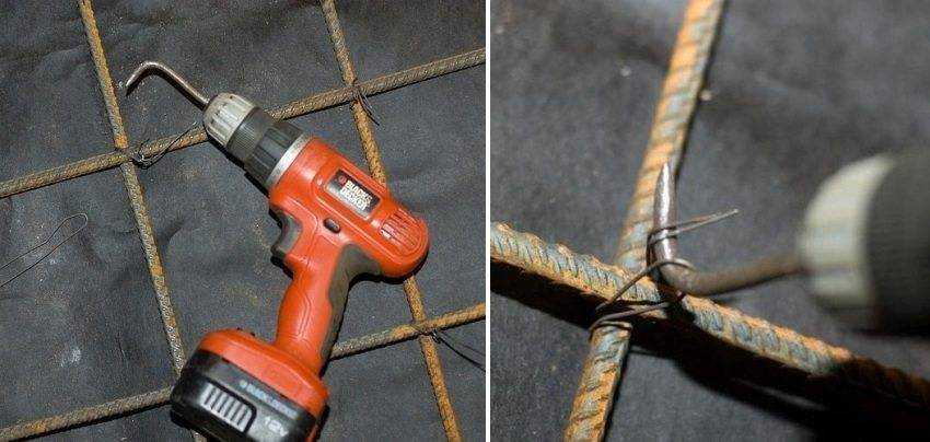 - Автоматический способ с применением пистолета или шуруповерта с насадкой для вязания проволоки.