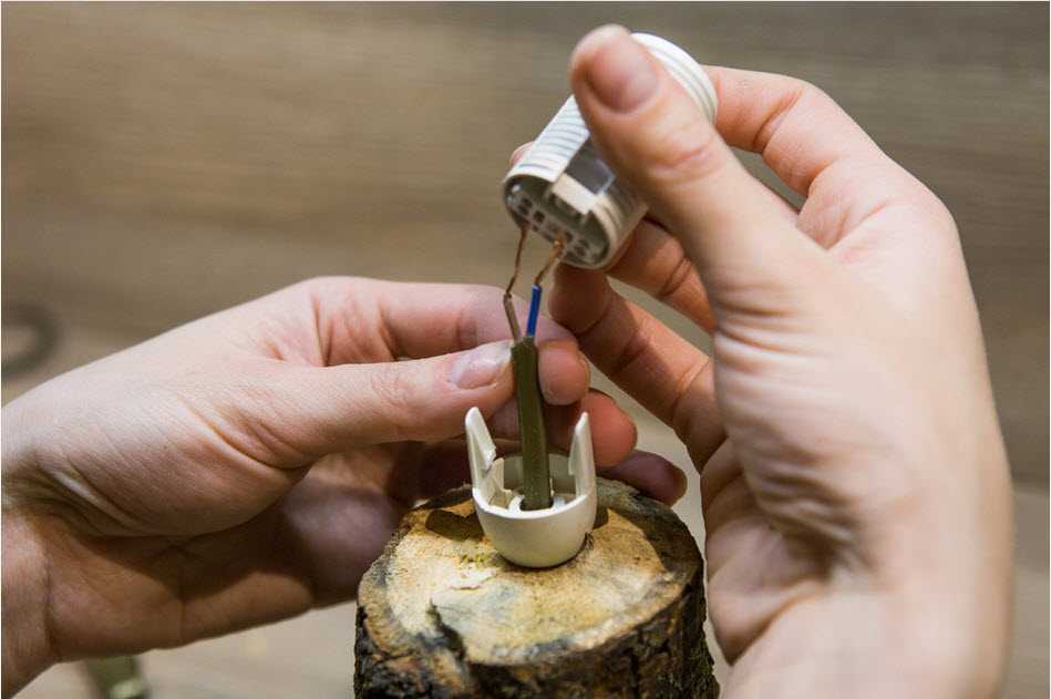 - После покрытия лаком нужно вставить патрон, подключить электричество.