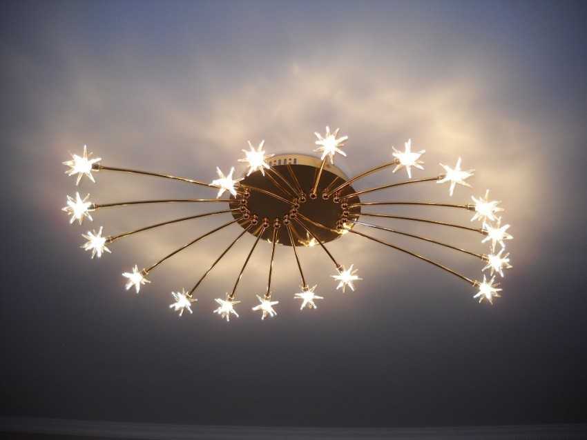 Например, для гостиной с параметрами 5*4 м уместно использовать люстру диаметром около 90 см.
