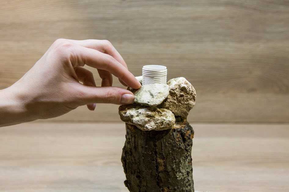 Если основание недостаточно устойчиво, сделайте к нему дополнительный декор. В нашем случае это камни. С помощью клея прикрепите небольшие симпатичные камушки к основанию, тем самым делая его устойчивым.