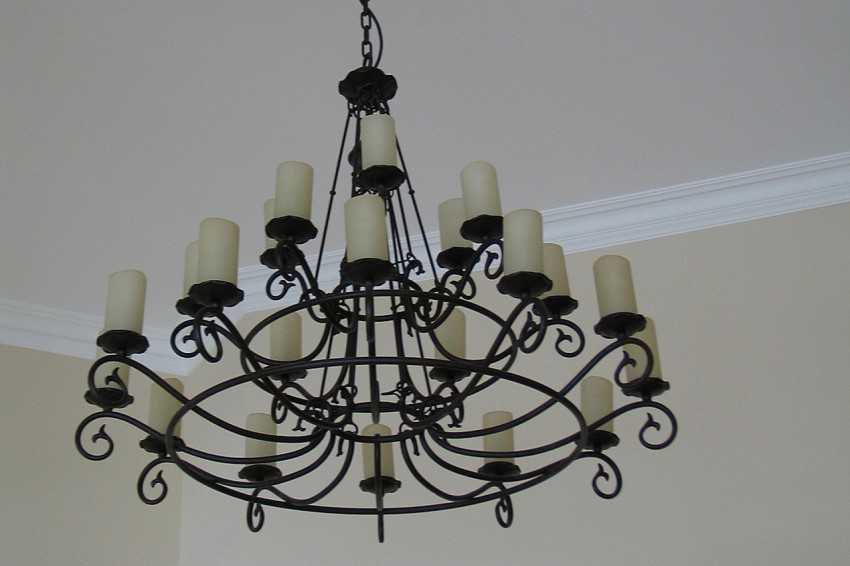 Прованс – состаренный стиль. С ним успешно конкурирует классика, поэтому в зал люди редко покупают такие люстры. Никакие шары и водопады не подойдут, они испортят детали, хотя кованые модели все же допускаются. Наибольшей популярностью пользуется коричневая и черная окраска, что больше подходит для дерева.