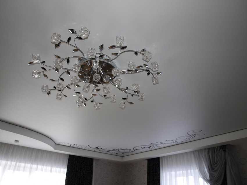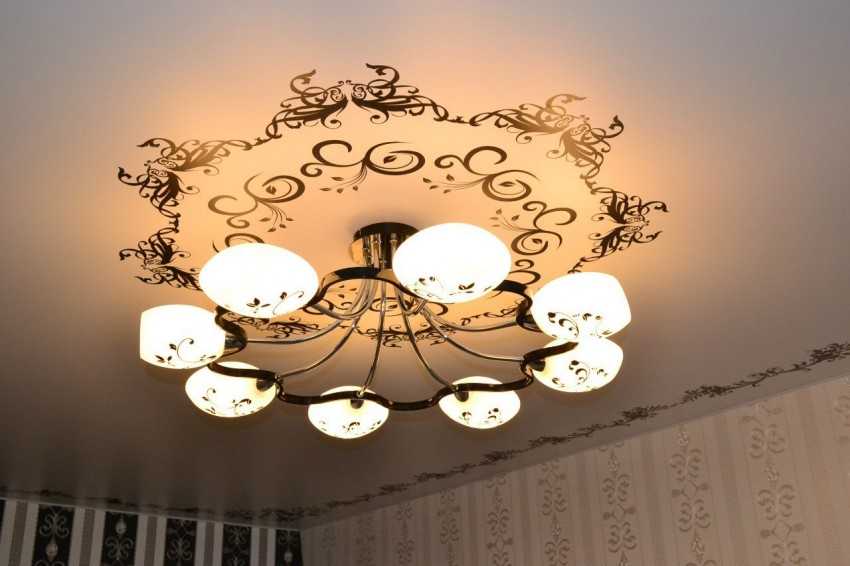 Арт-Деко – новый стиль, больше напоминающий картинку. В нее вписываются кованые красивые люстры, хотя золотые модели также считаются хорошим выбором. При использовании натяжных потолков появляются некоторые ограничения в выборе освещения для гостиной.