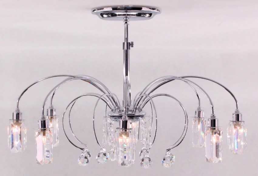 Серебристые шары и тонкие металлические прутья – вот весь стиль хай-тек. В нем хорошо смотрится даже люстра паук, но в чем секрет? Для кухни, спальни или гостиной такой вариант выбирается постоянно. Он объединяет в себе серебристый блеск металла и стекла. Нет, арт-деко не сравнится с ним, если человеку нравится урбанизация. Лучше выбрать обыкновенные подвесные шары, чем снова обращаться к вычурности и ярким оттенкам.