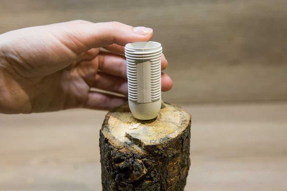 Видимую часть патрона задекорируйте как вам нравится. В нашем случае это те же камни, что и у основания ножки.