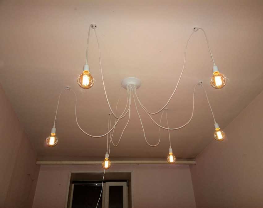 когда лак высохнет, просверлить отверстия под провода и установить плафоны;